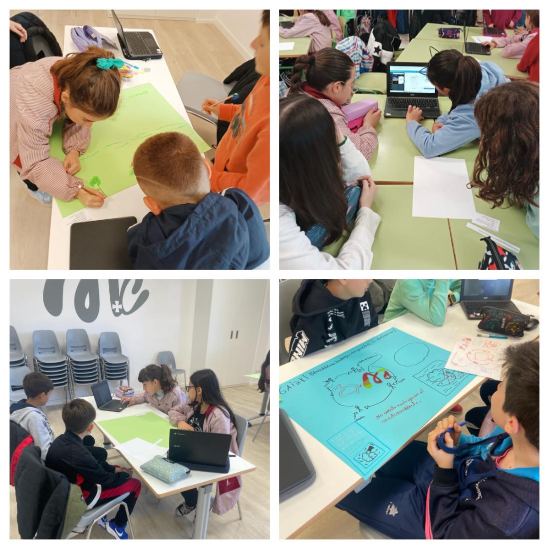 Corazonistas eskolako 5. mailako ikasleak gurekin elkartu ziren eskolan. Birziklapen egokiari buruzko kartelak sortu genituen eta poz-pozik eta gustura egon ginen. Español