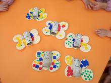Tximeleta 3-4 urteko haurrek beraien lehen tximeleta egin dute. Lehenik puntzoia erabili dute, gero gorputza margotu dute, eta ondoren pegatinak jarri dituzte apaintzeko. Leer más sobre Tximeleta Español