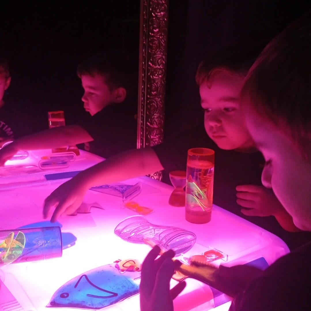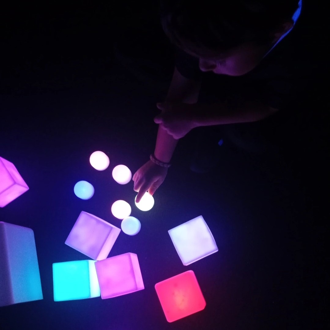 El TALLER DE LUZ NEGRA es un espacio multisensorial en el que el niño/a, a través de la luz, entra en un MUNDO MÁGICO.